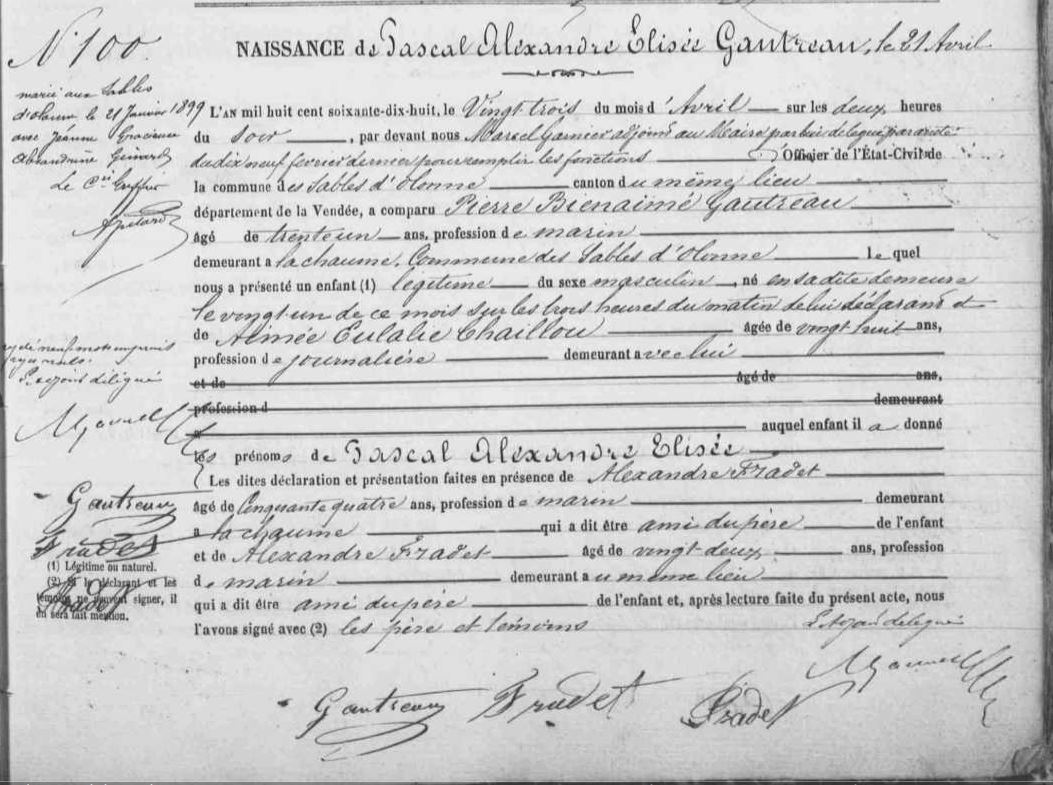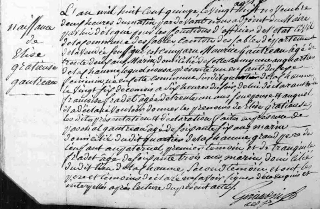 Père : GAUTREAU Pierre Paschal ( 1751 - ? )
