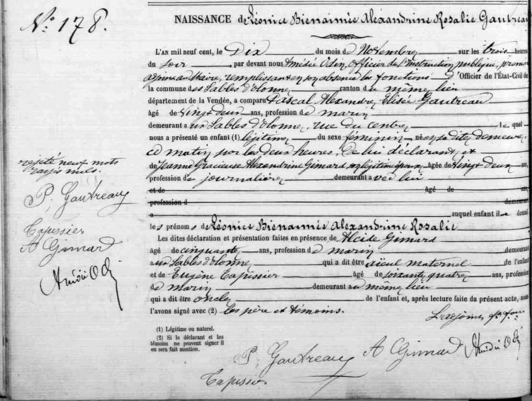 GAUTREAU Léonice Bienaimée Alexandrine Rosalie
