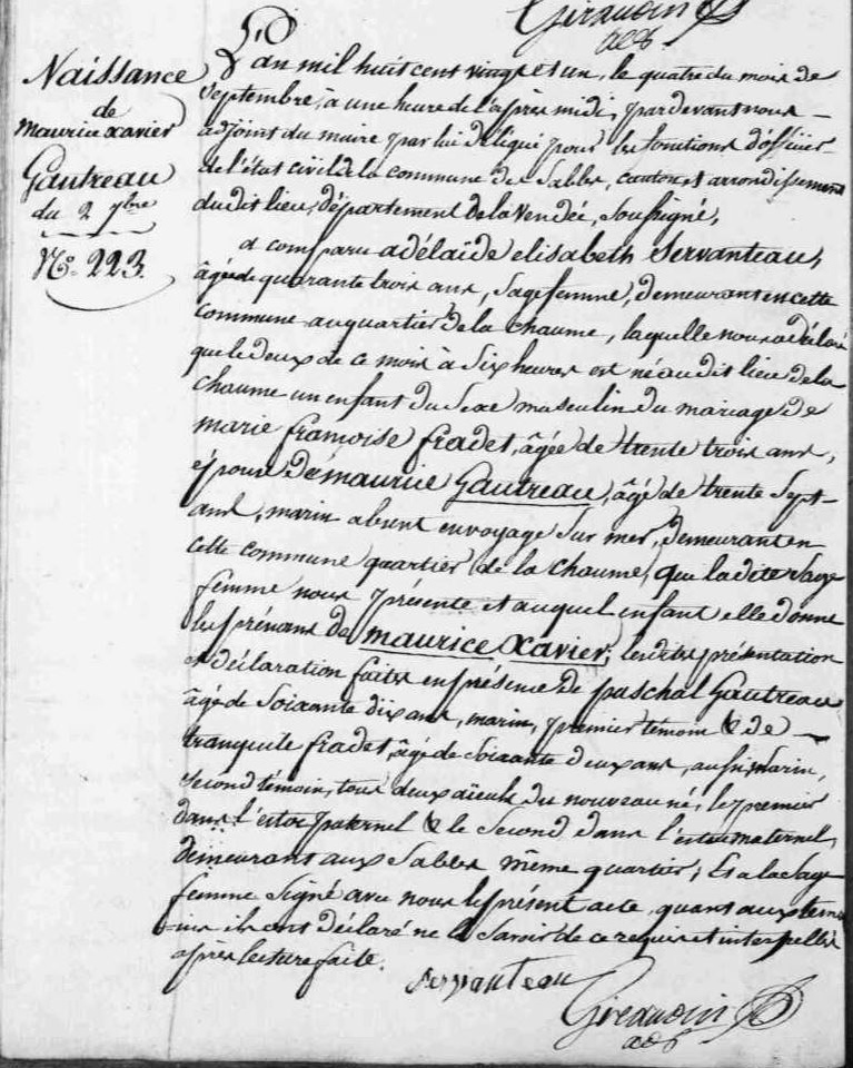 Père : GAUTREAU Maurice ( 1782 - ? )