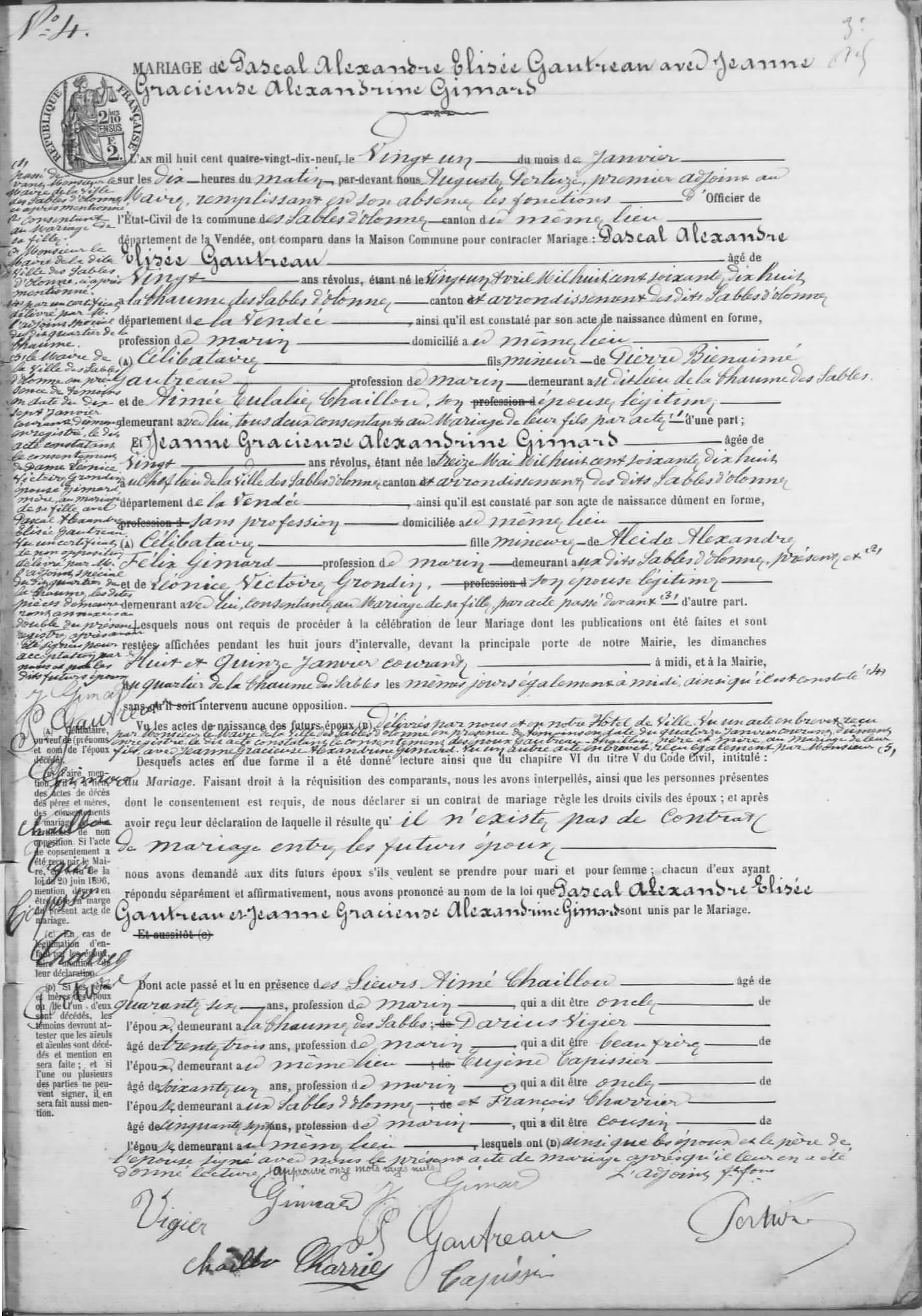 Mariage : 21 janvier 1899 à Les Sables-d'Olonne 85180
