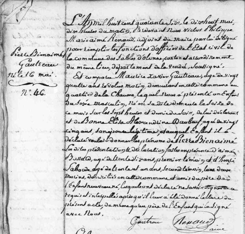 Enfant : GAUTREAU Maurice ( 1782 - ? )
