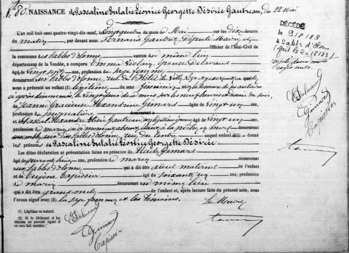 Naissance : 16 mai 1846 à Les Sables-d'Olonne 85180 La Chaume