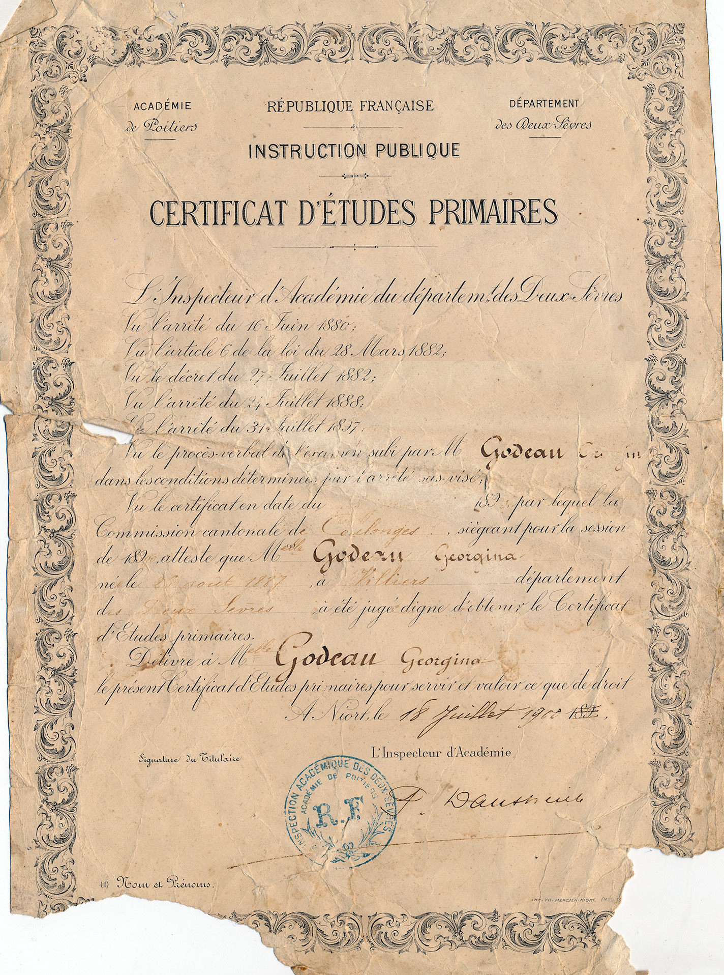 Naissance : 26 août 1887 à Villiers-en-Plaine 79160 Diplômes :