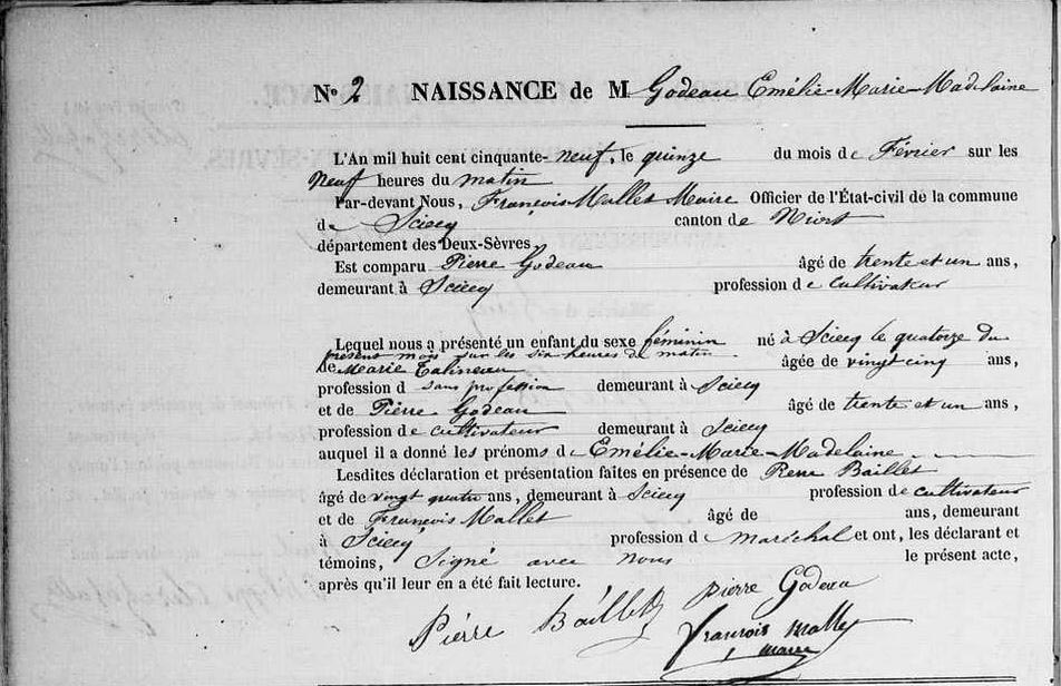 Naissance : 7 septembre 1866 à Sciecq 79000 La Gibaudière