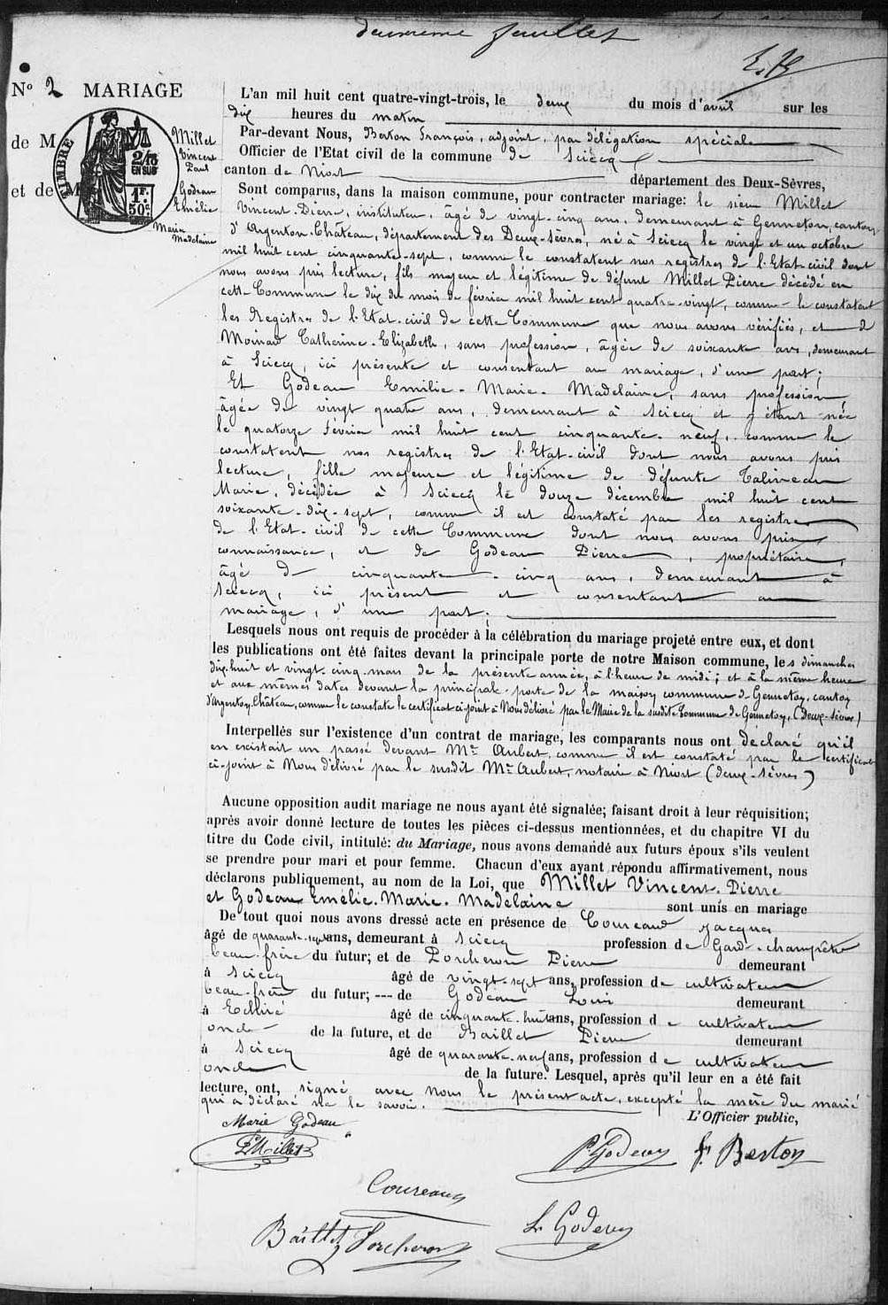 Union : MILLET Vincent Pierre ( 1857 - ? )