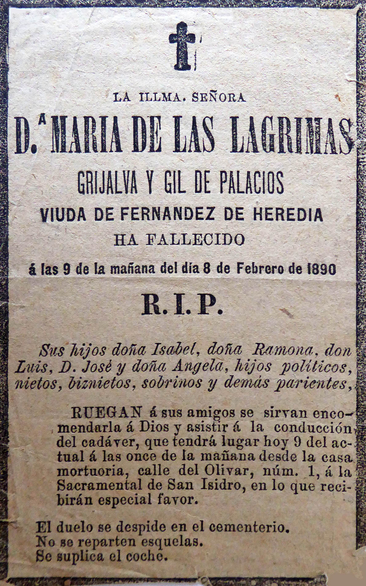GRIJALVA Y GIL de PALACIOS María de Las Lágrimas ( ? - 1890 )