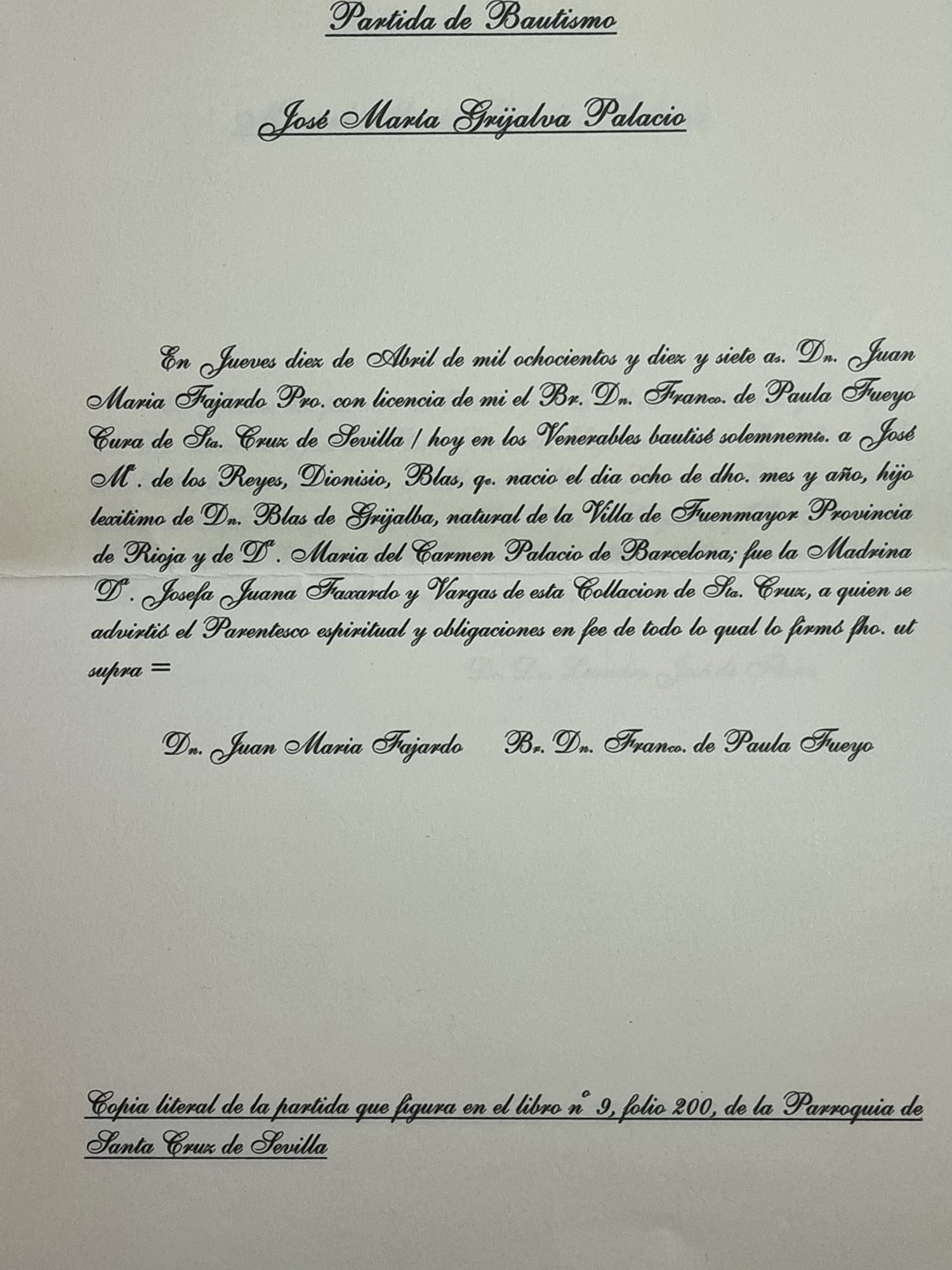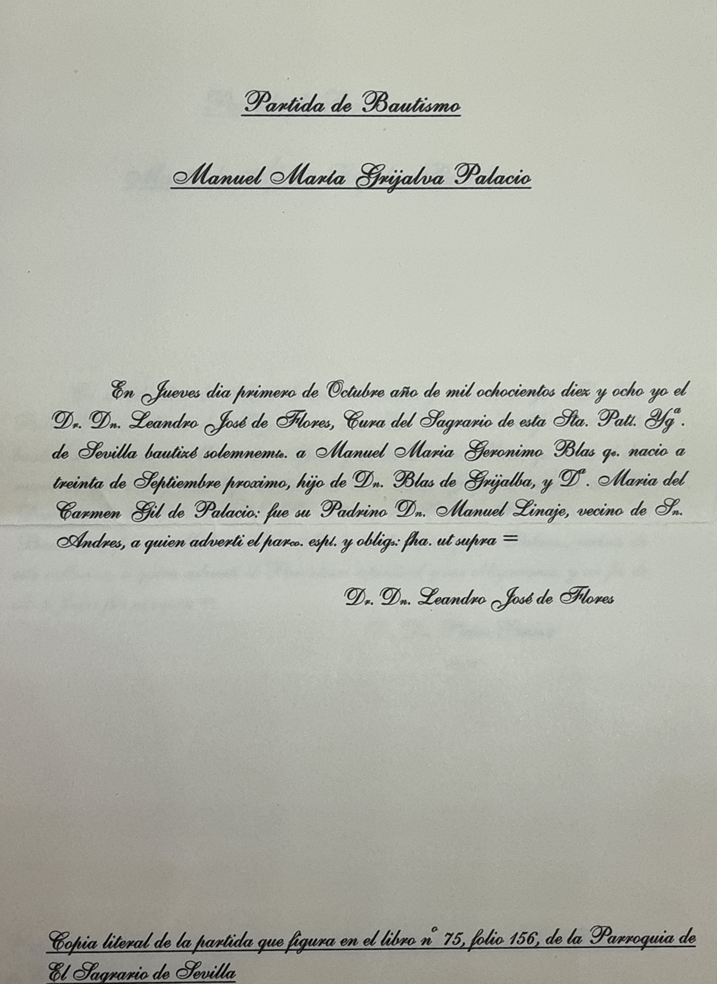 GRIJALVA Y GIL de PALACIOS Manuel María Geronimo Blas