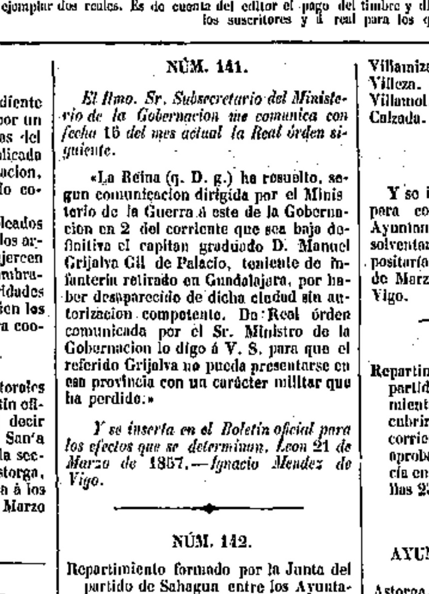 arrêté militaire : 21 mars 1857 à Guadalajara