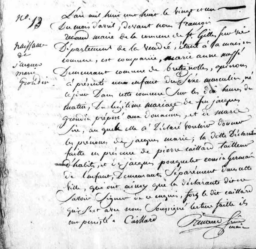 Enfant : GRONDIN Jacques Marie ( 1808 - ? )