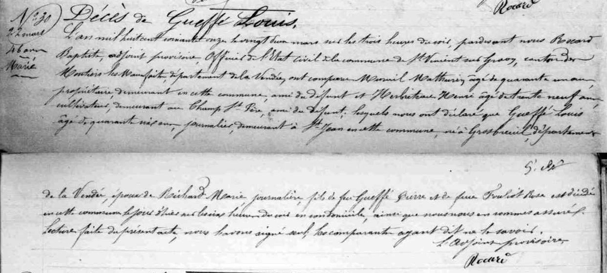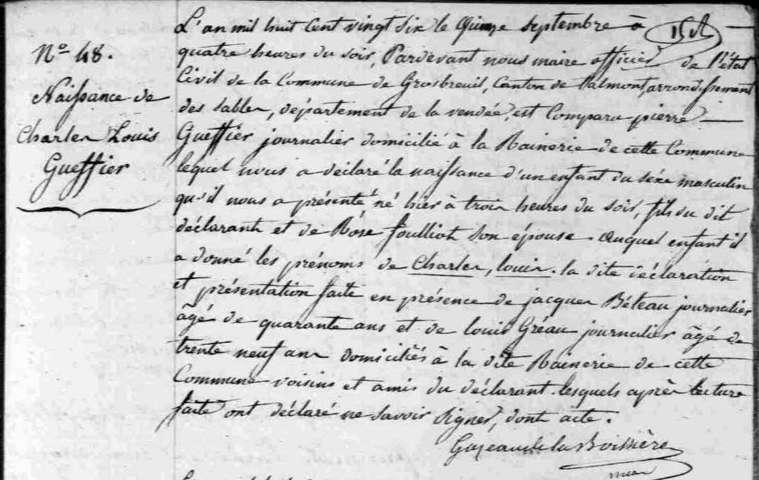 Autre enfant : GUEFFIER Pierre Denis ( ? - ? )
