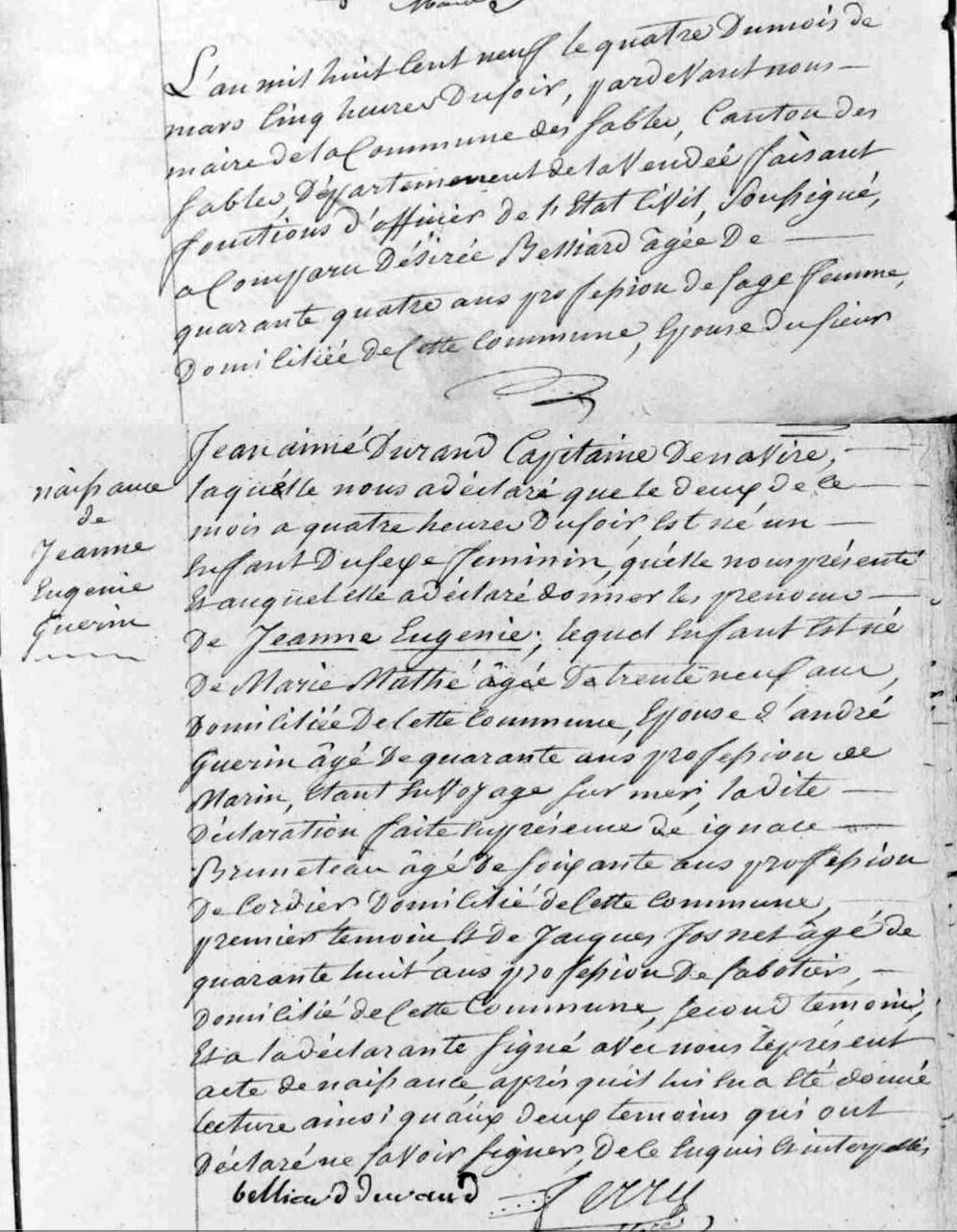 Enfant : GUÉRIN Jeanne Eugénie ( 1809 - ? )