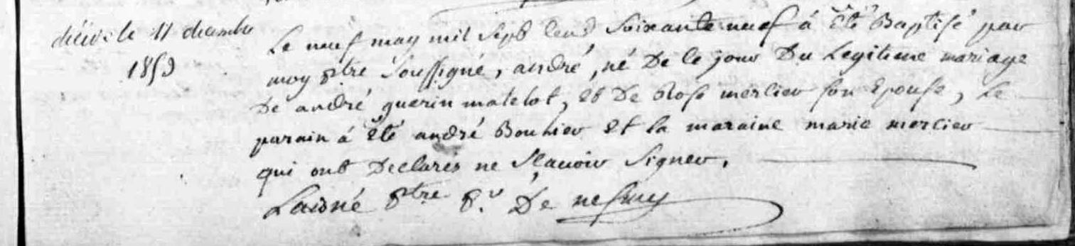 Naissance : 9 mai 1769 à Les Sables-d'Olonne 85180 Baptême : 9 mai 1769 à Les Sables-d'Olonne 85180 Paroisse Notre-Dame des Sables