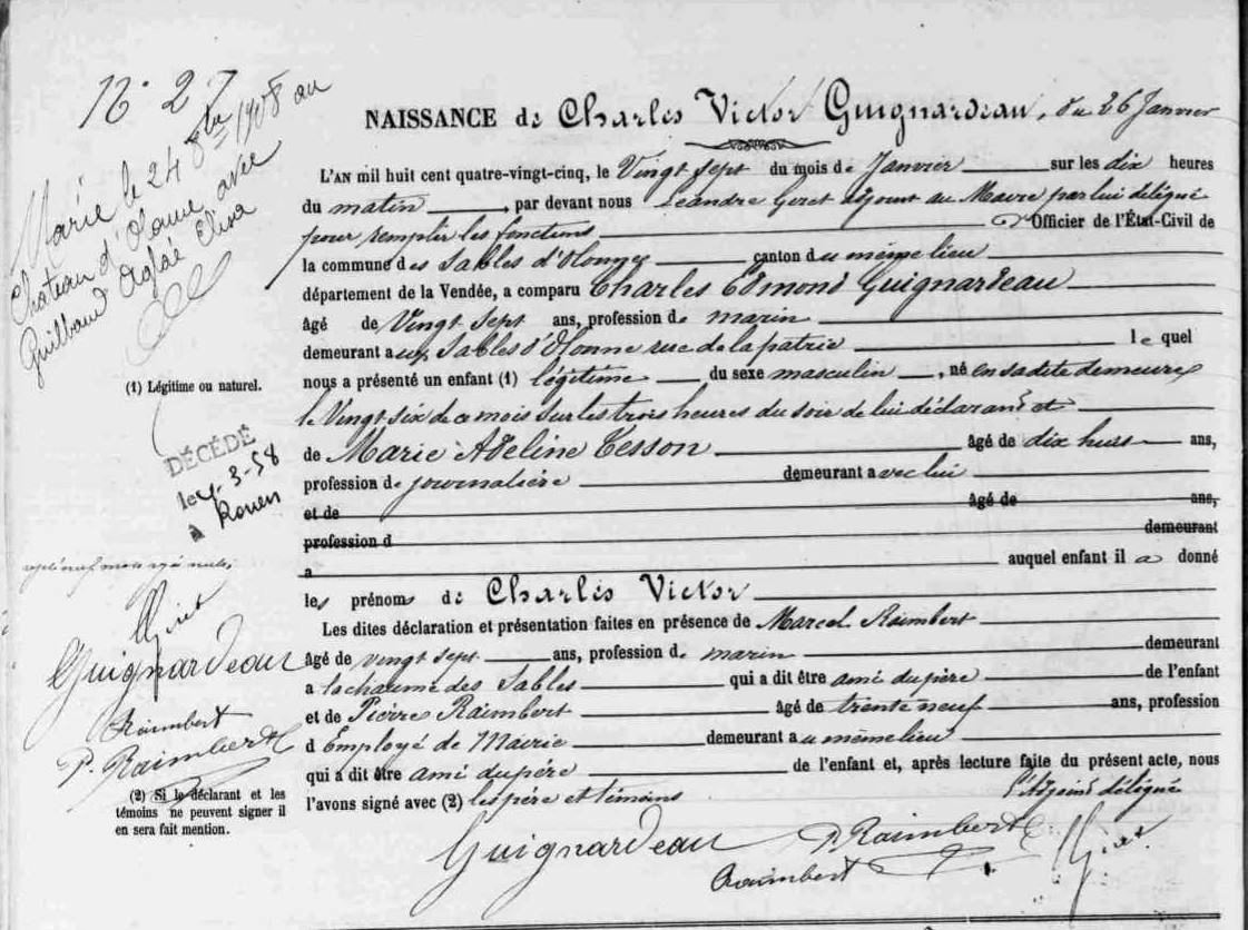 Enfant : GUIGNARDEAU Charles Victor ( 1885 - 1958 )