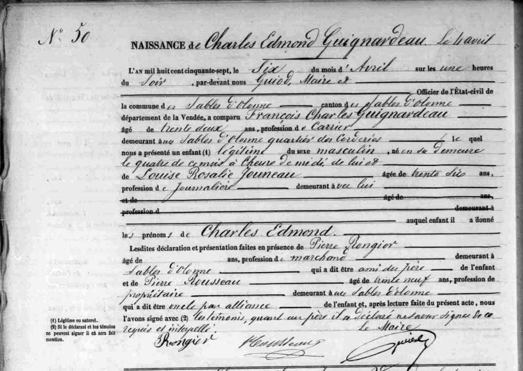 Naissance : 4 avril 1857 à Les Sables-d'Olonne 85180 quartier des Corderies