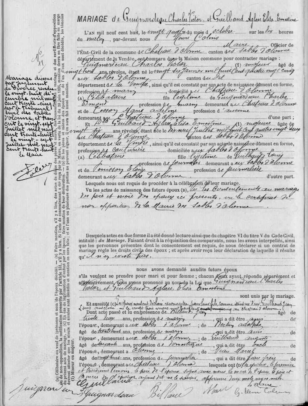 Père : GUIGNARDEAU Charles Edmond ( 1857 - ? )