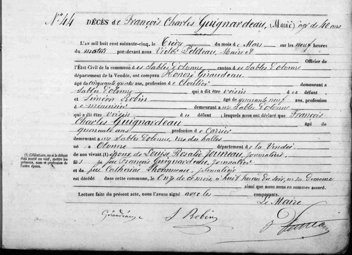 Décès : 11 mars 1865 à Les Sables-d'Olonne 85180 rue des halles