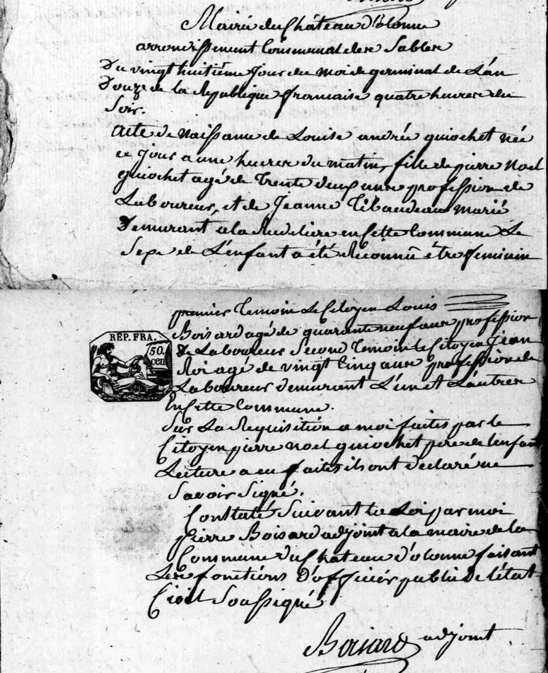 Enfant : GUIOCHET Louise Andrée ( 1804 - 1843 )