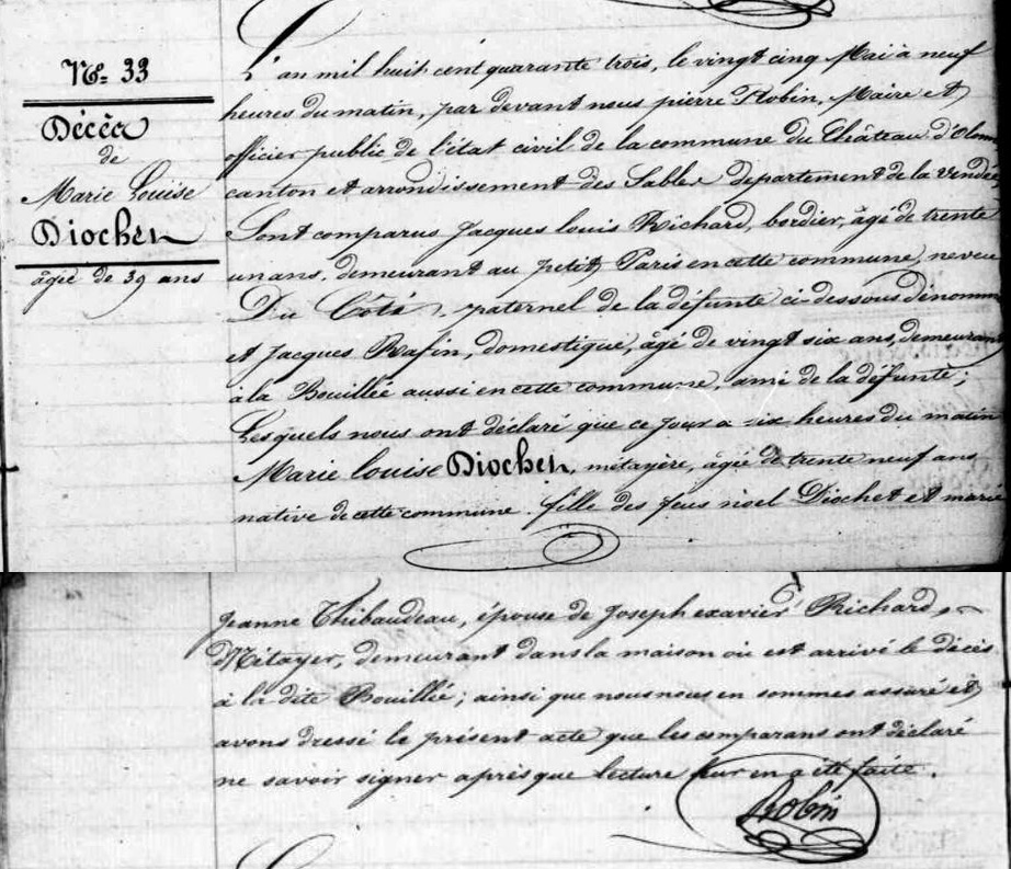 Naissance : 24 décembre 1772 à Château-d'Olonne 85180