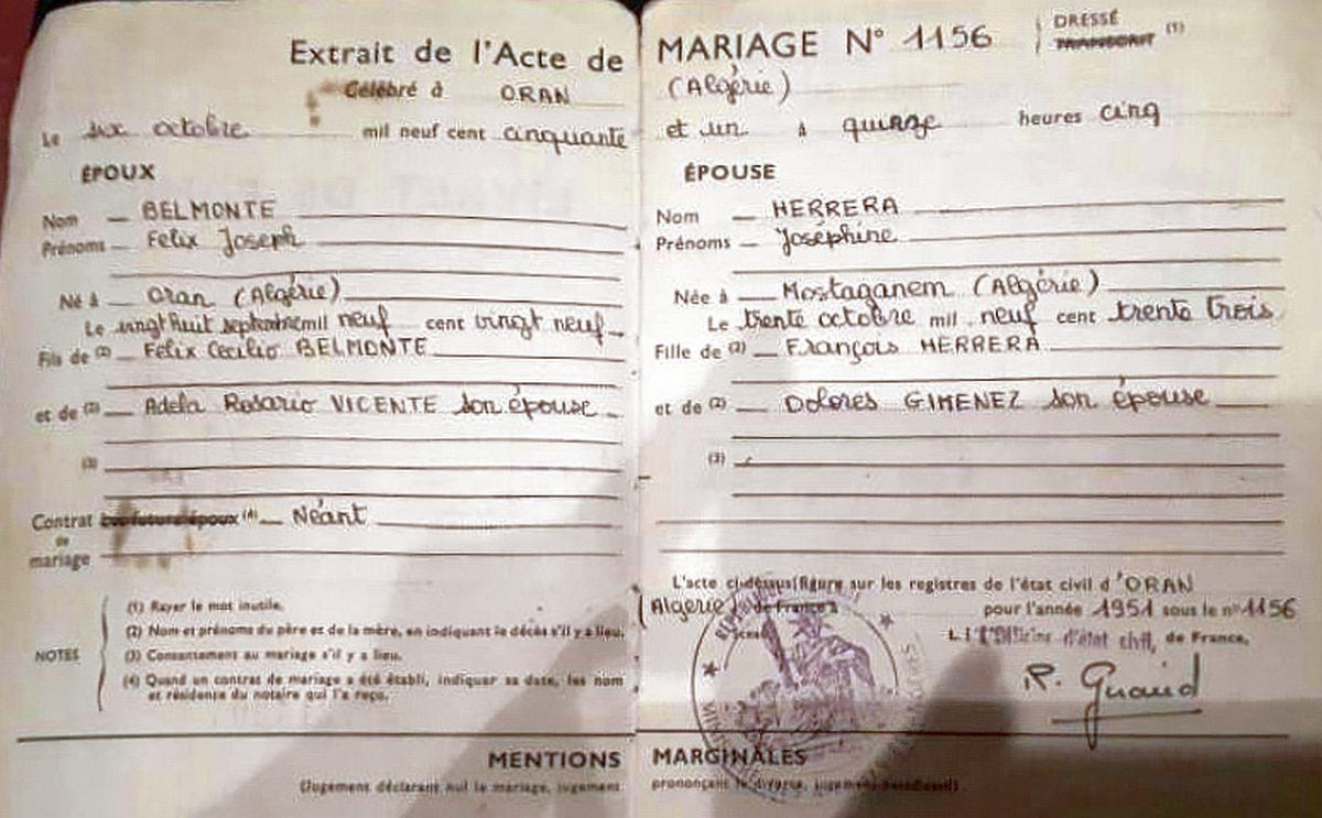 Union : BELMONTE Félix Joseph ( 1929 - 1999 )