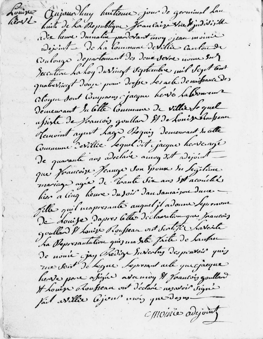 Naissance : 3 mars 1767 à Ardin 79160