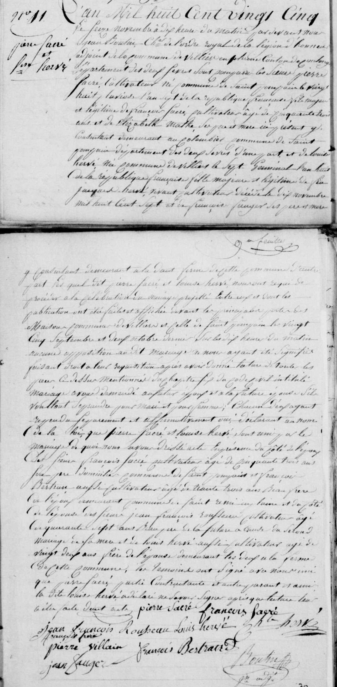 Mariage : 29 avril 1750 à Villiers-en-Plaine 79160
