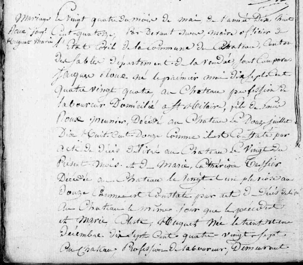 Naissance : 31 décembre 1787 à Château-d'Olonne 85180 Décès : 2 janvier 1825 à Château-d'Olonne 85180