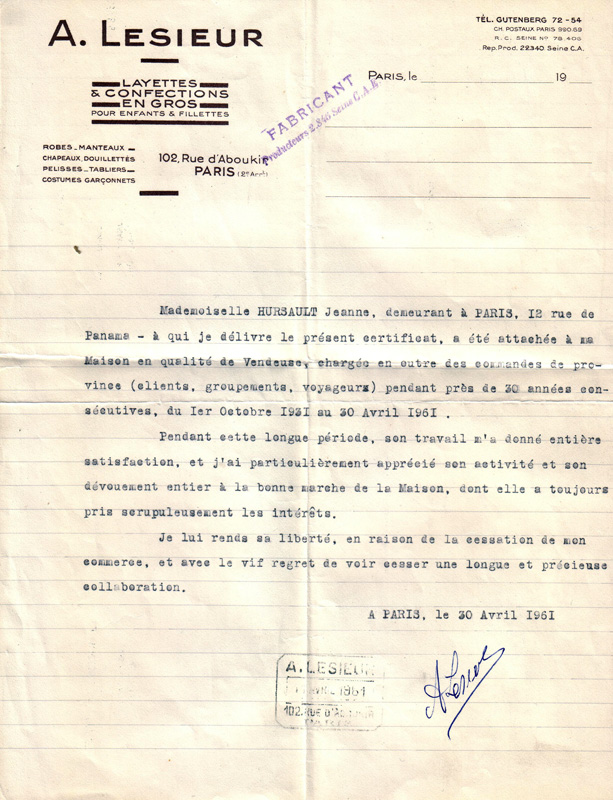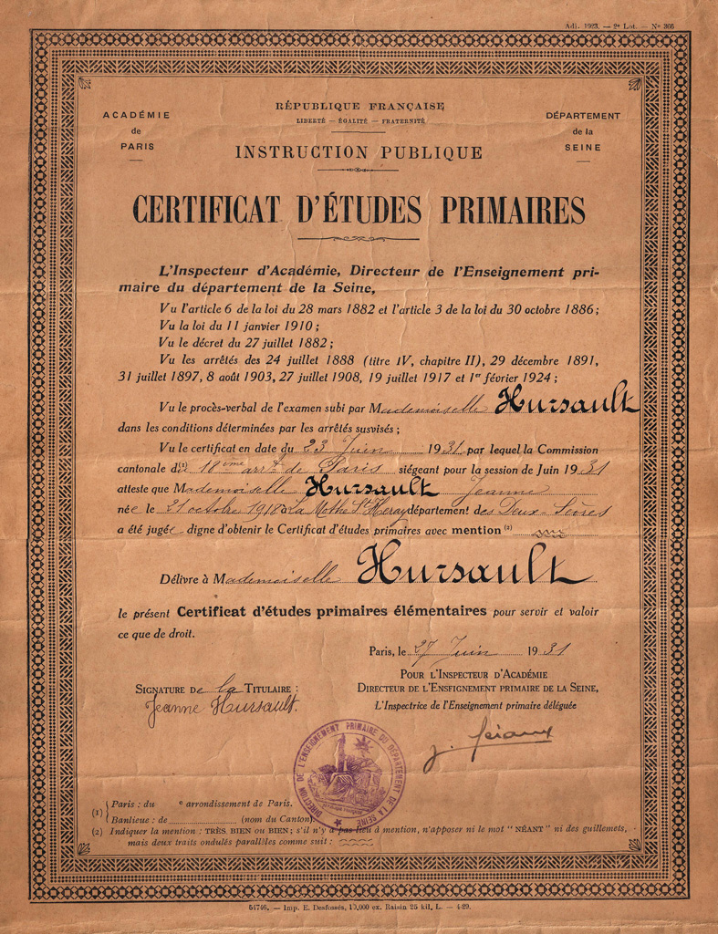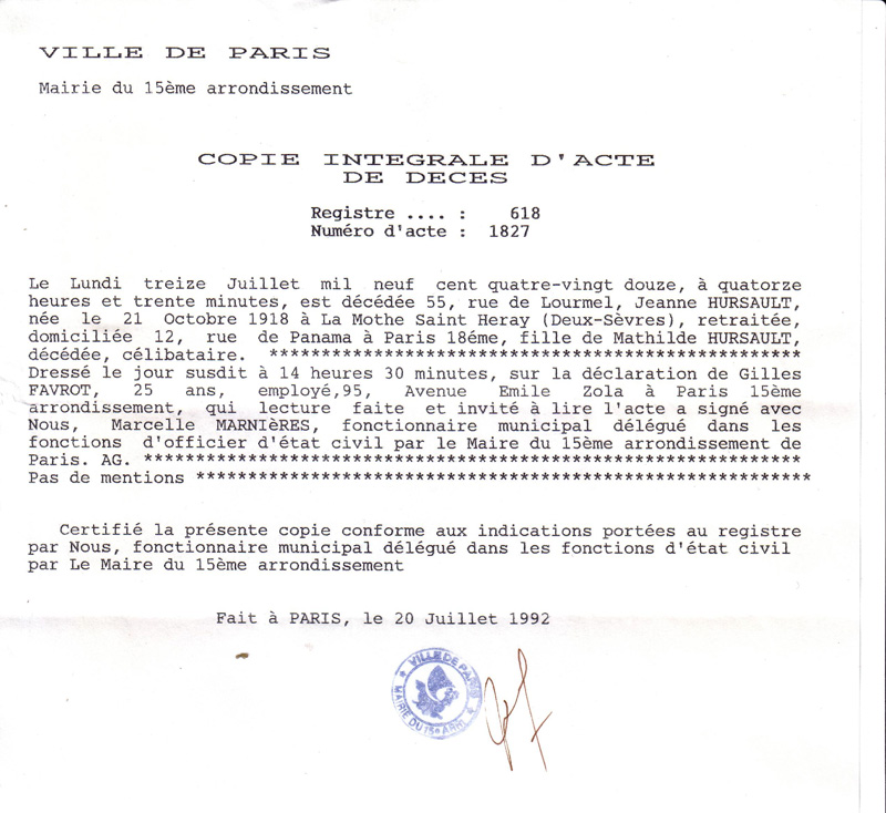 Mère : HURSAULT Mathilde ( 1896 - 1989 )
