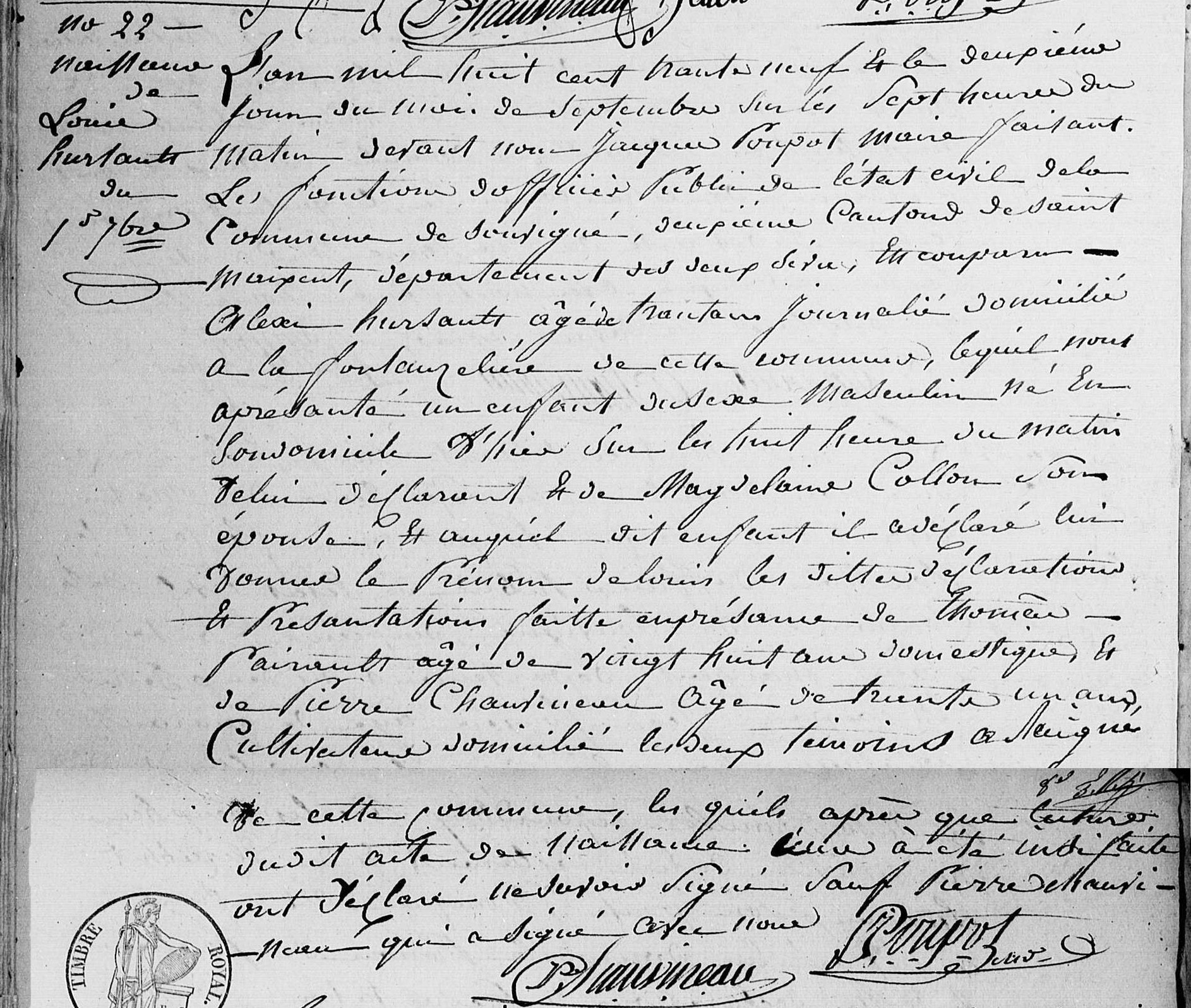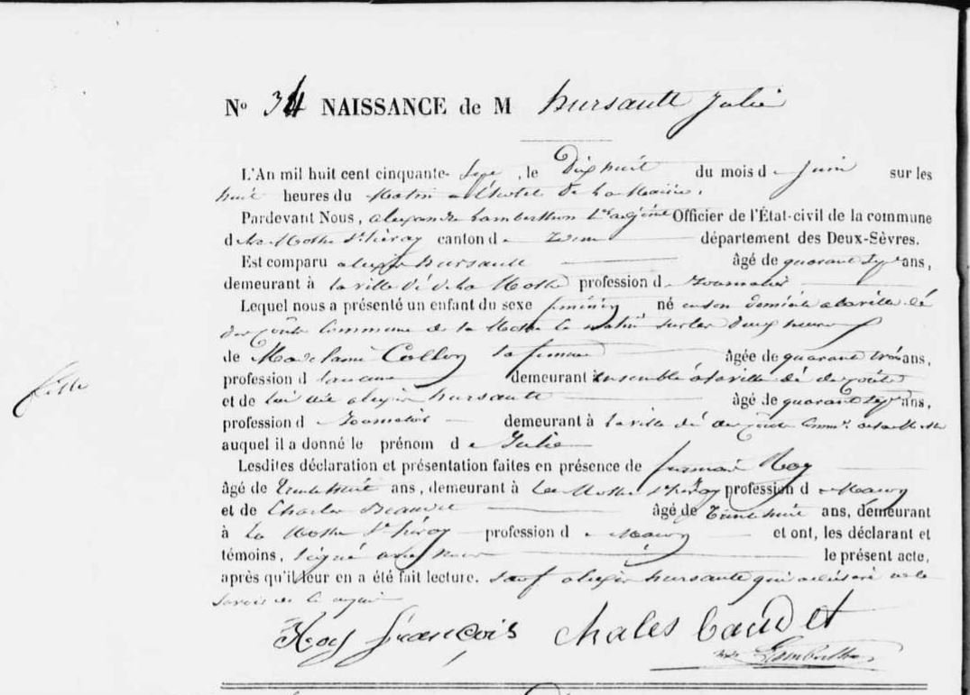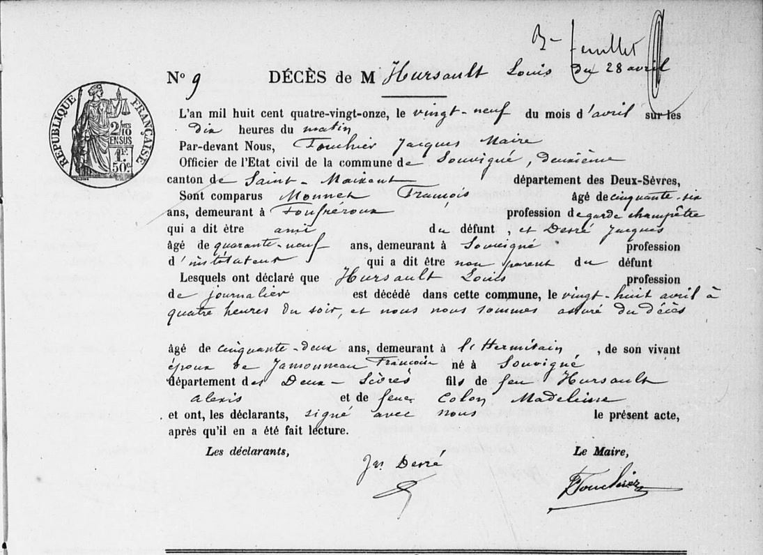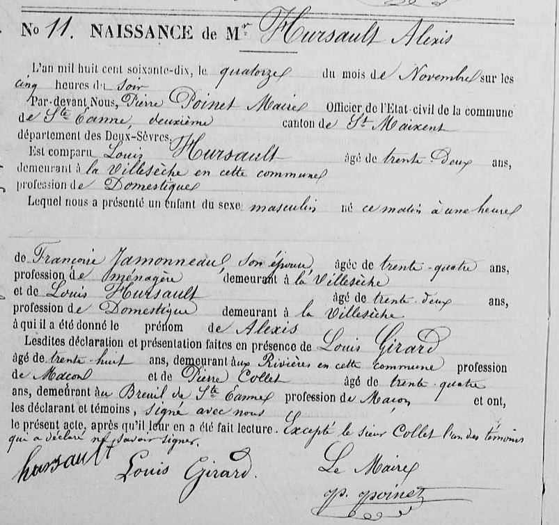 Père : HURSAULT Alexis ( 1809 - 1863 )