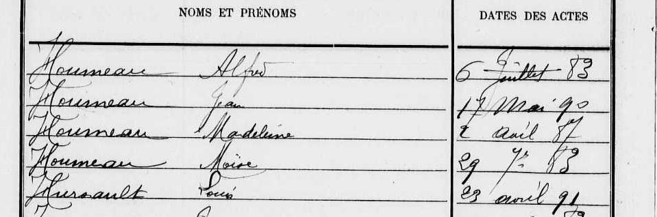 Naissance : 28 octobre 1841 à La Couarde 79800 Goux (anc. commune) village de l'Erable
