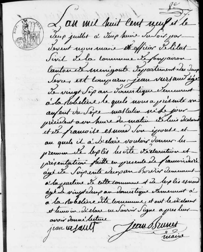 Naissance : 1er juillet 1809 à Fomperron 79340 La Robelière