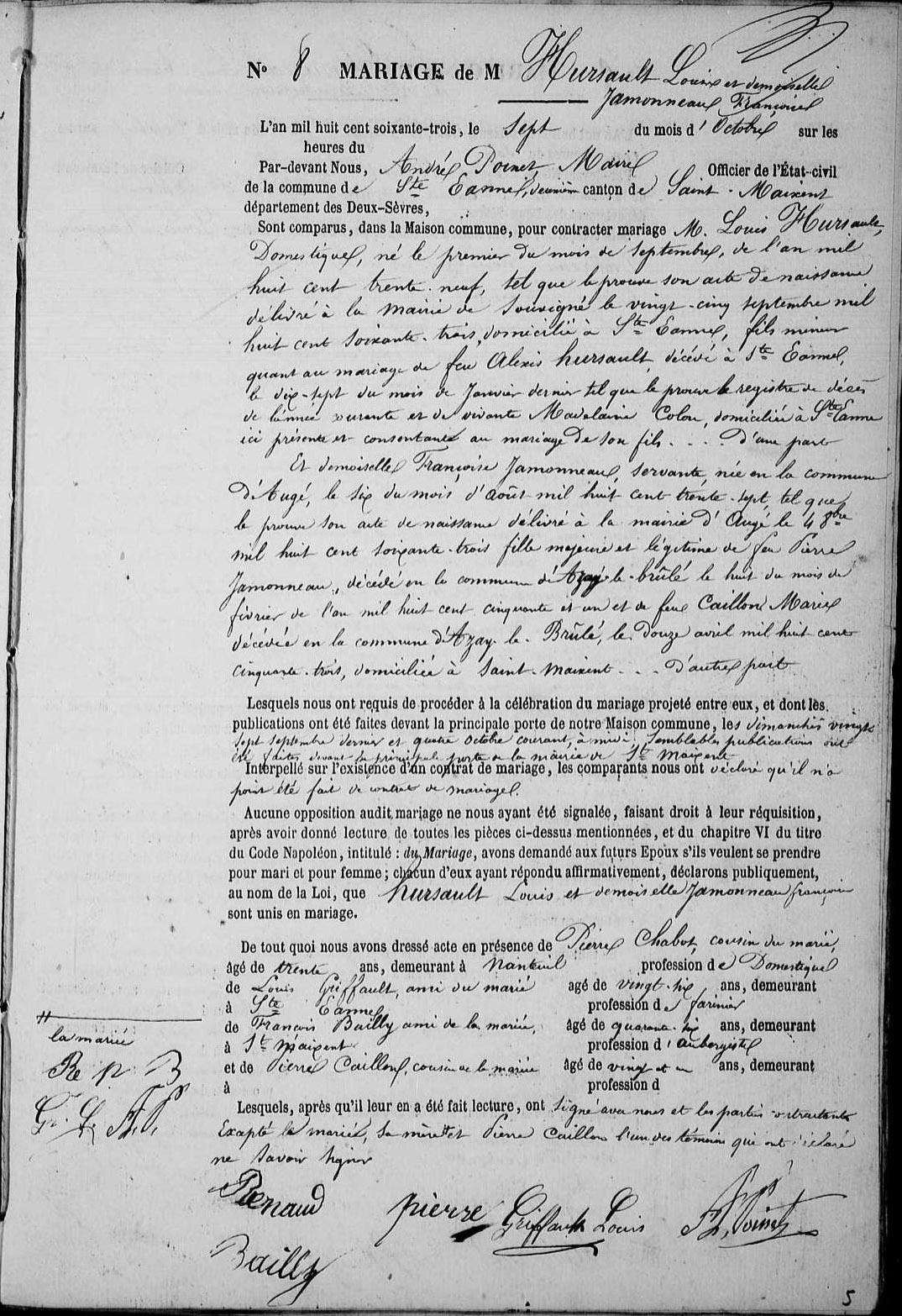Mariage : 7 octobre 1863 à Sainte-Eanne 79800