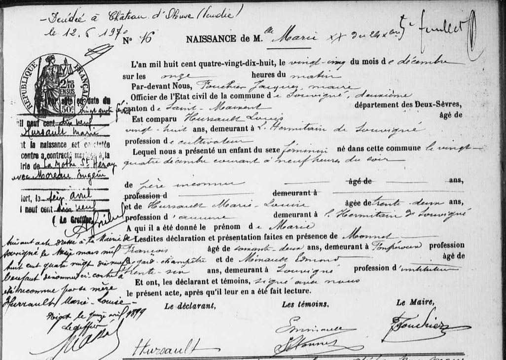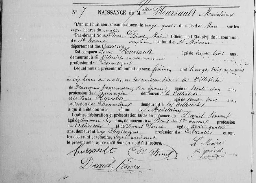 Naissance : 23 mars 1872 à Sainte-Eanne 79800