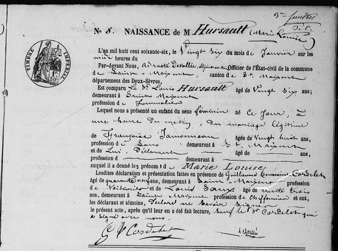 Père : HURSAULT Alexis ( 1809 - 1863 )