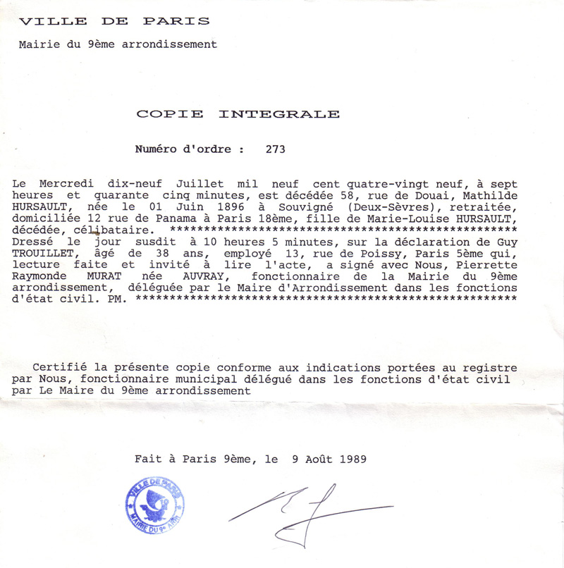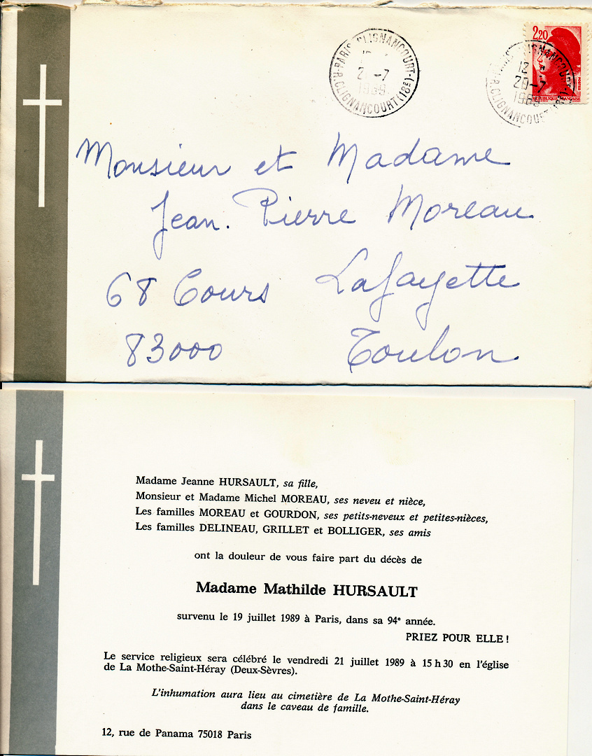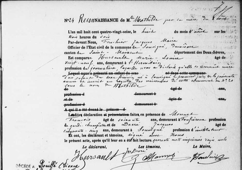 Autres enfants : HURSAULT Mathilde ( 1896 - 1989 )
