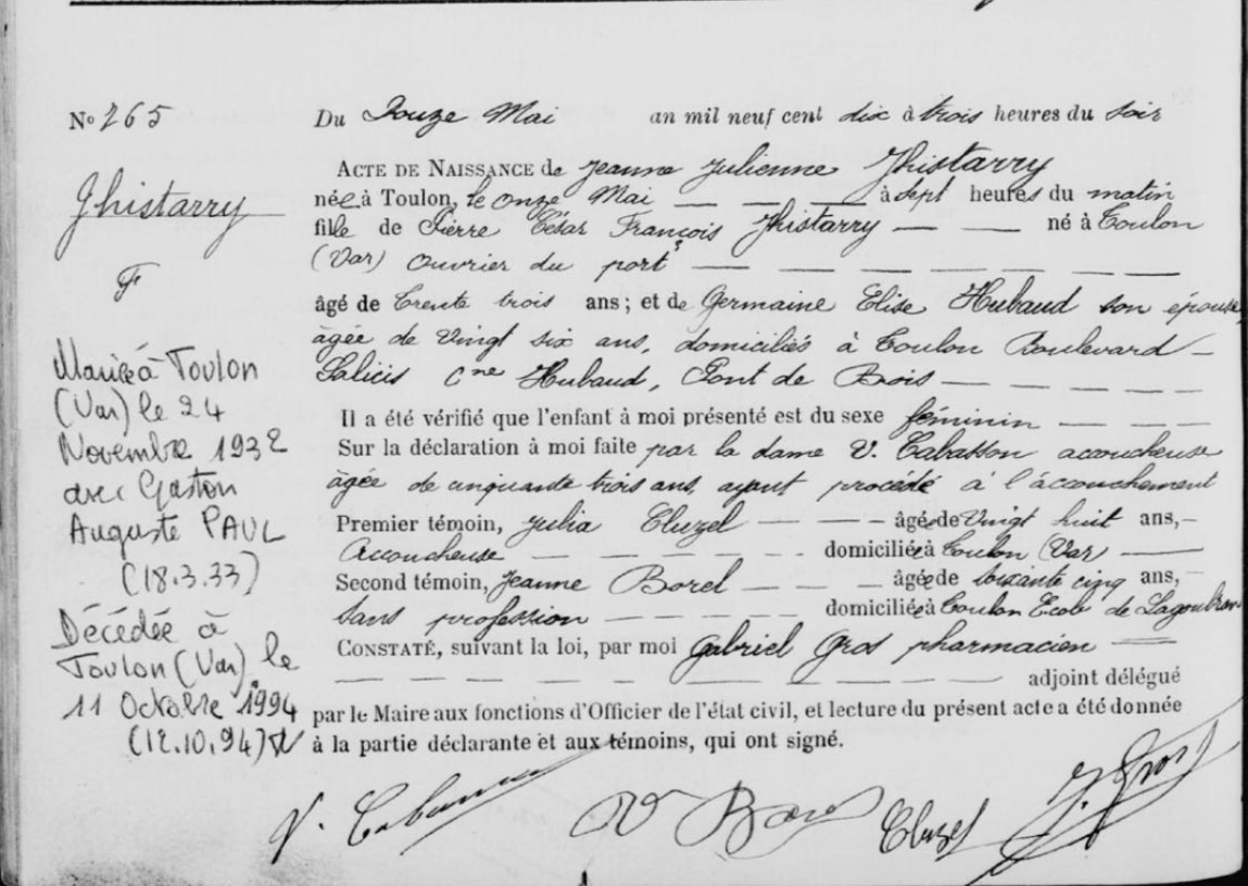 Union : PAUL Gaston Auguste ( 1910 - ? )