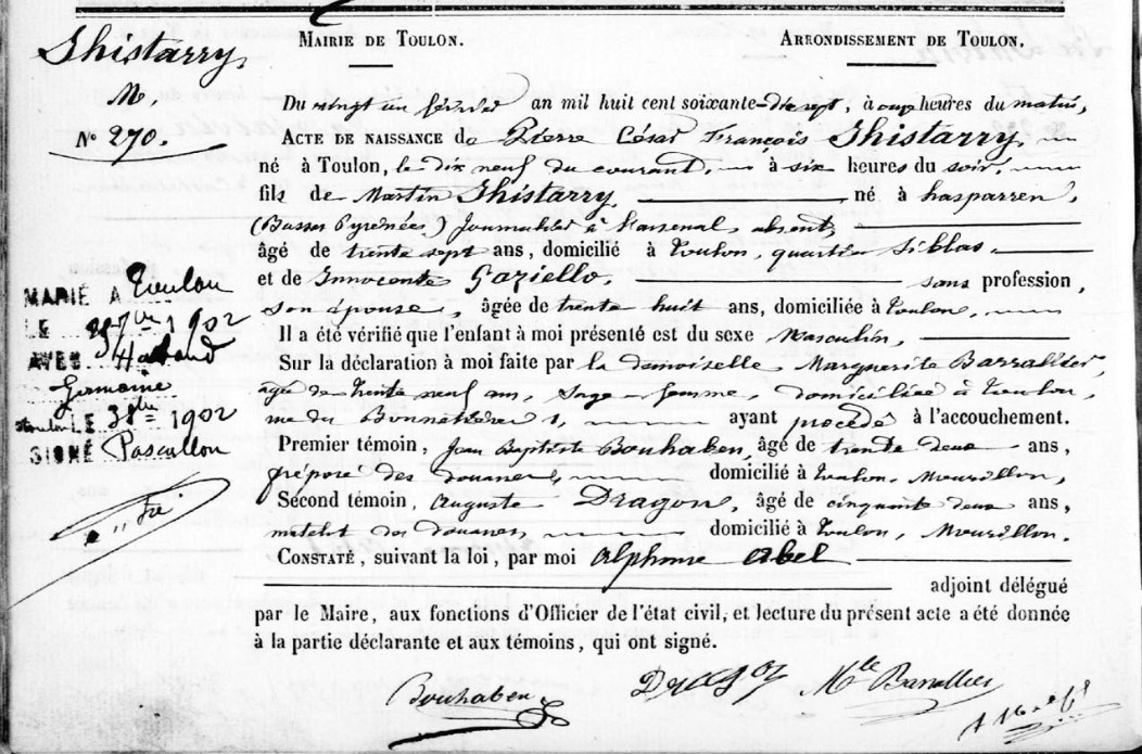 Enfant : IHISTARRY Pierre César François ( 1877 - ? )