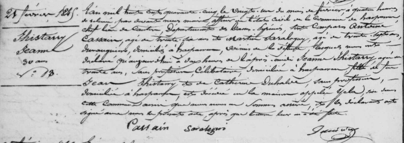 Mère : IHIZTARI Jeanne ( 1817 - 1845 )