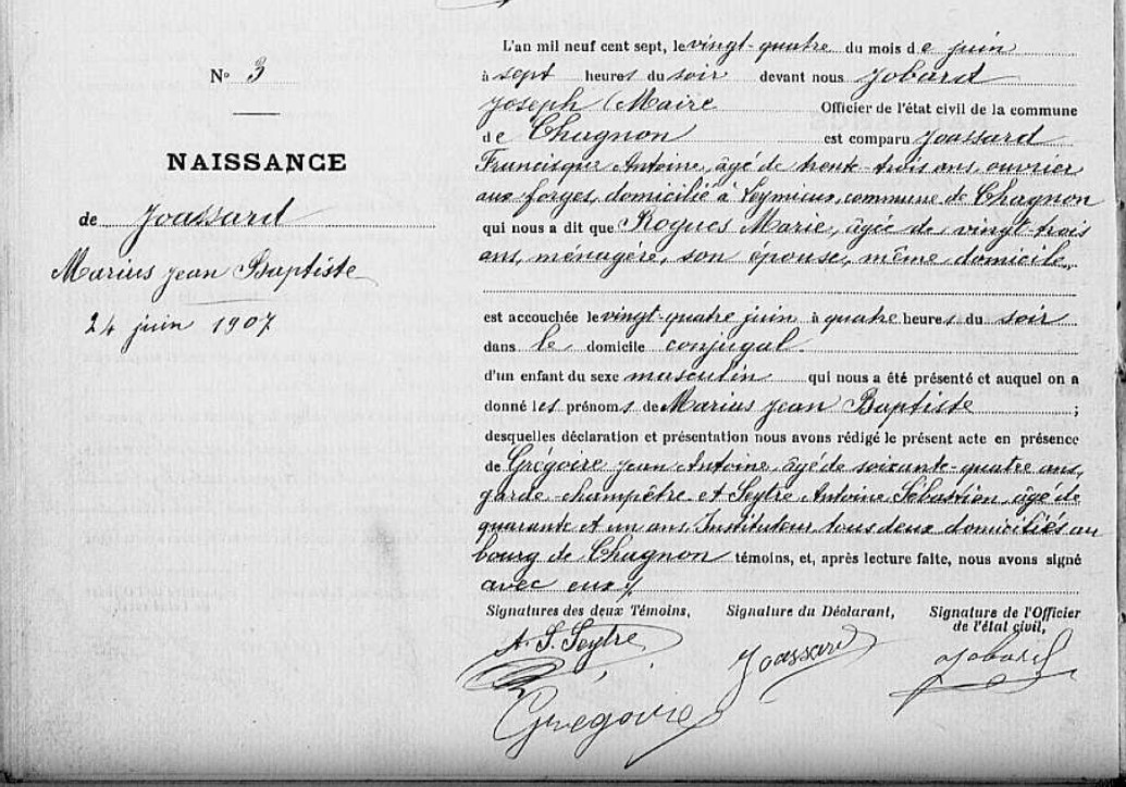 Naissance : 1919 à Chagnon 42800