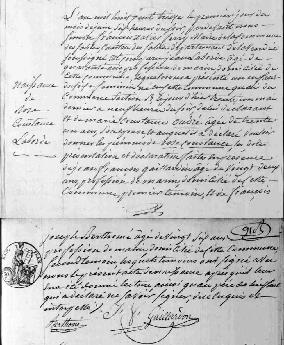 Enfant : LABORDE Rose Constance ( 1813 - ? )