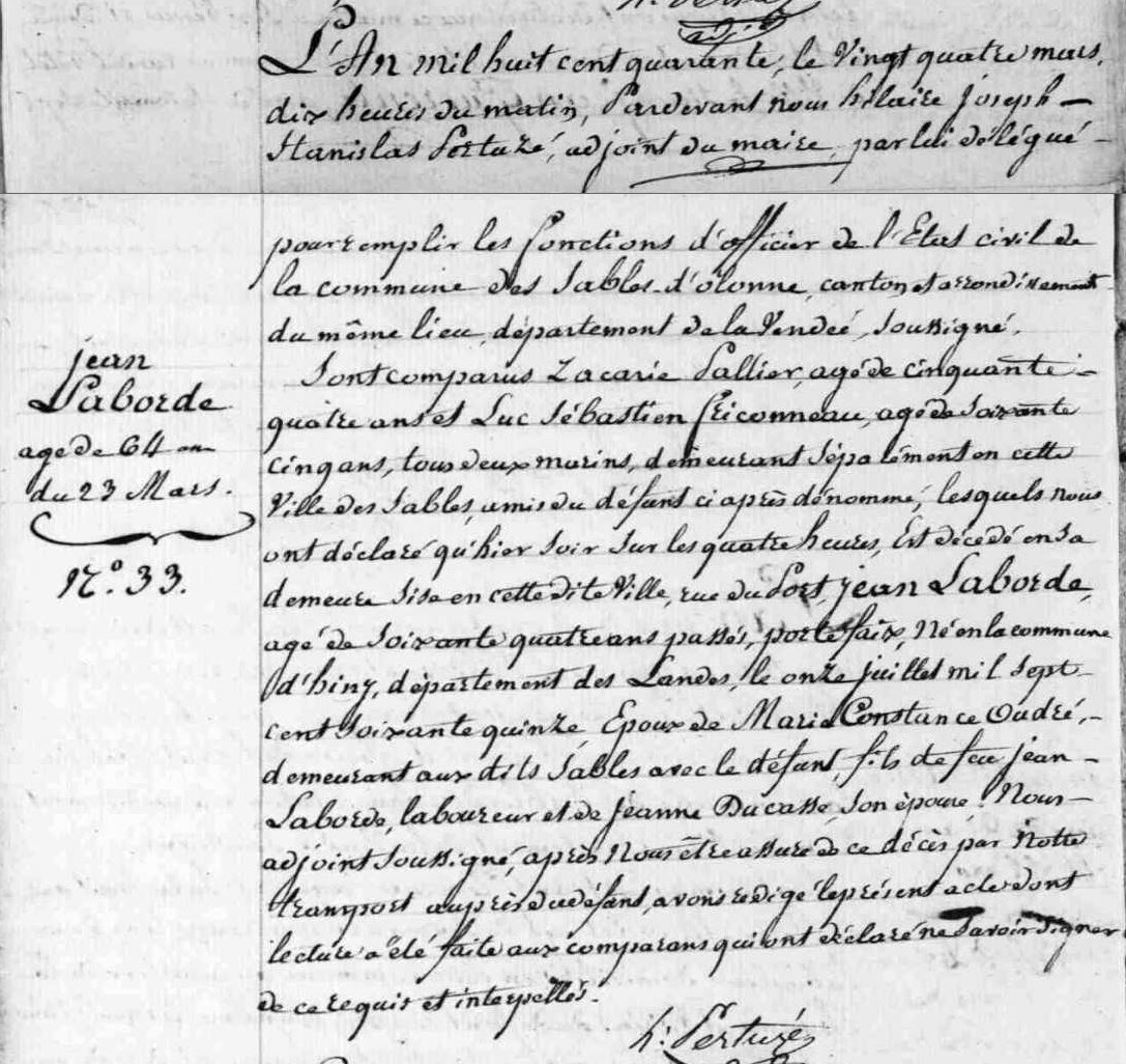Naissance : 1732 Décès : 27 janvier 1807 à Pouillon 40350 Soublan