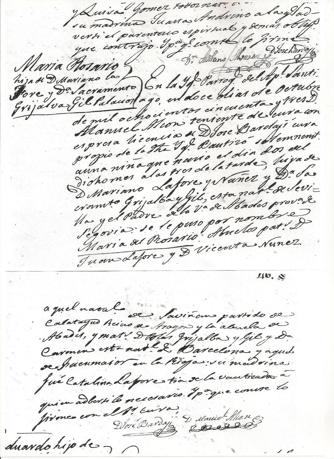 Mère : GRIJALVA Y GIL de PALACIOS María Del Sacramento ( ? - ? )