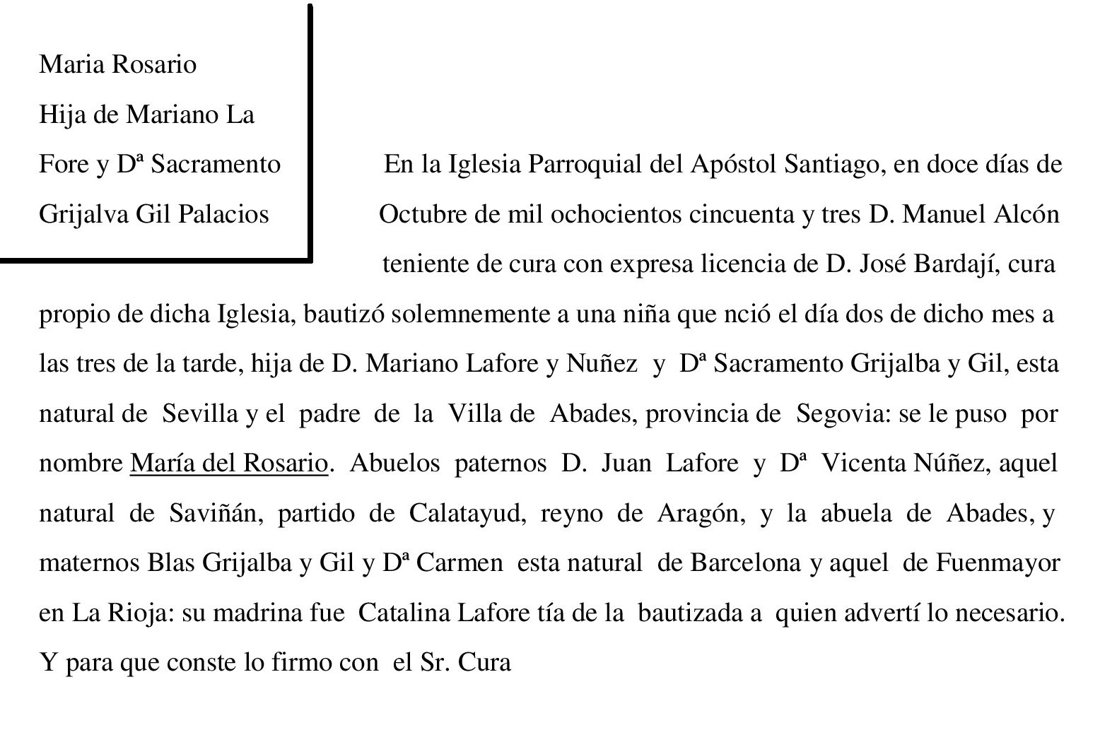Naissance : 8 octobre 1853 à Villa del Prado 28630 Baptême : 12 octobre 1853