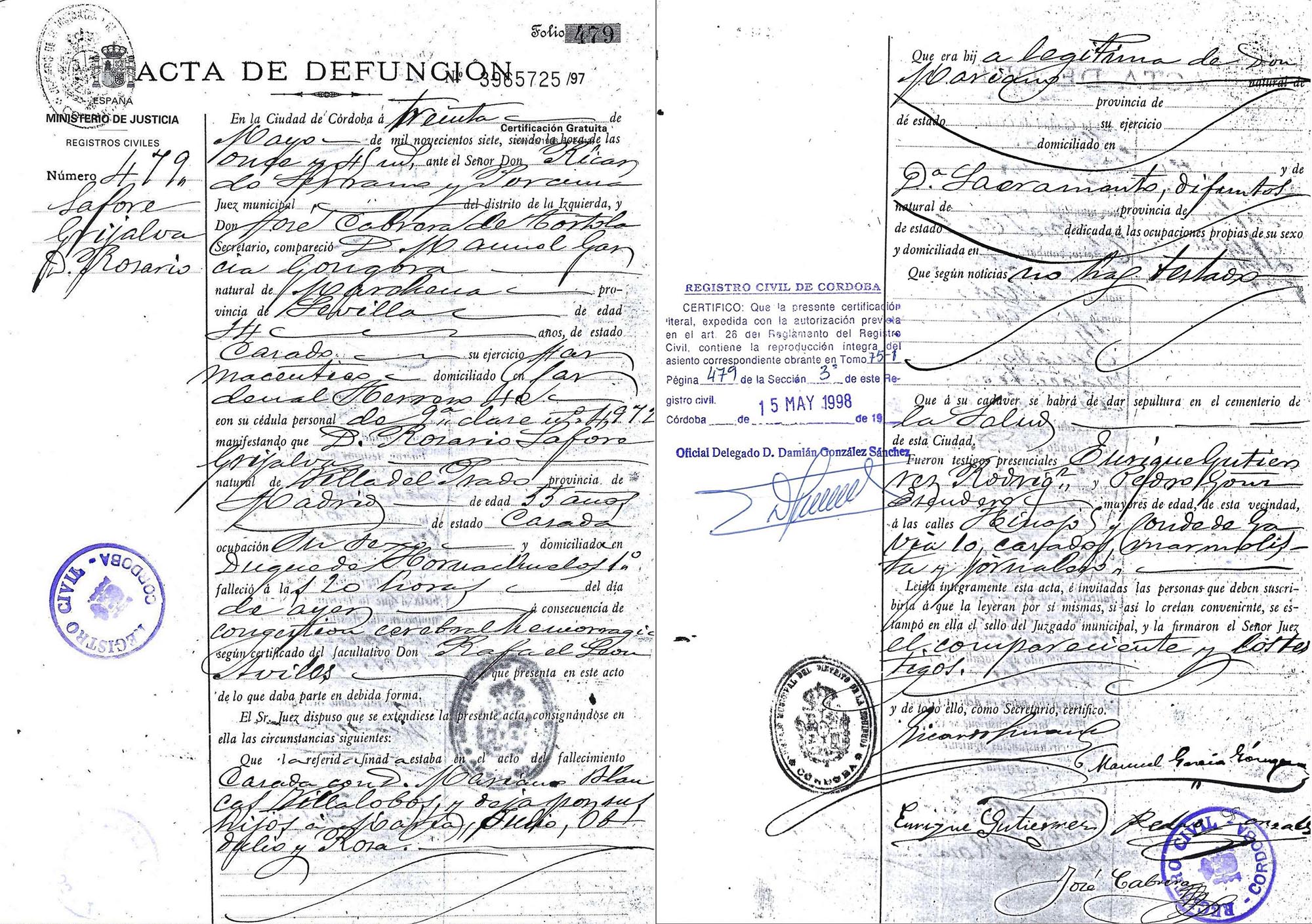 Inhumation : 30 mai 1907 à Córdoba 14001 cementerio Nuestra Señora de la Salud