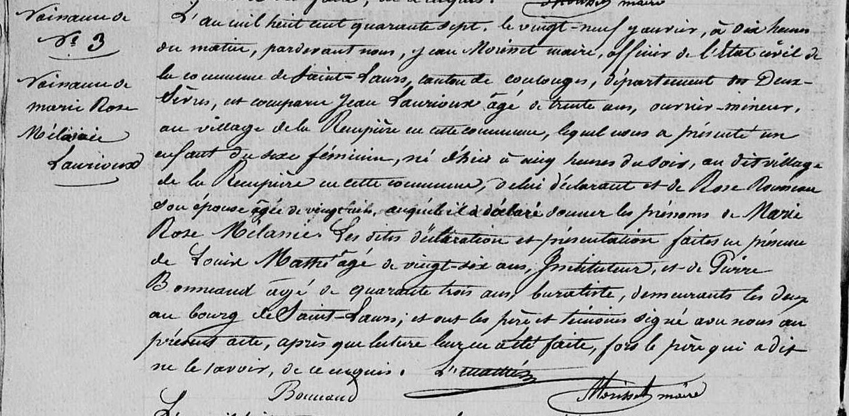 Enfant : LAURIOUX Marie Rose Mélanie ( 1847 - ? )