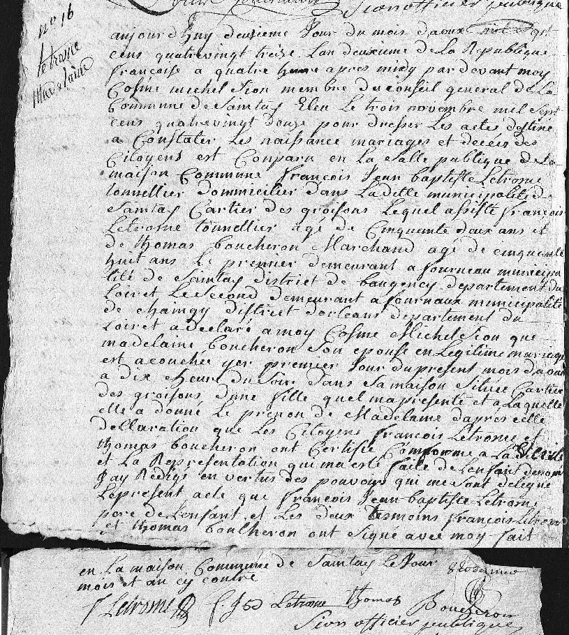 Enfants : LETRÔNE Madelaine ( 1793 - ? )