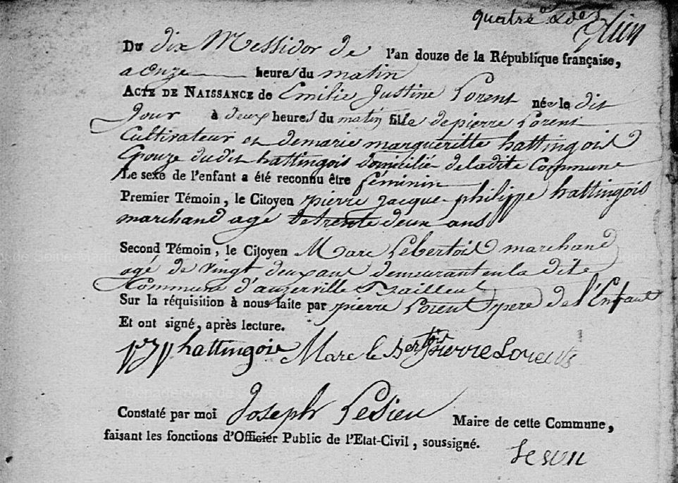 Mère : HATTINGOIS Marie Marguerite ( 1767 - 1843 )
