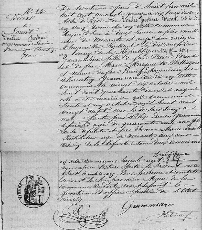 Union : GRAMMARE Lucien Dominique Florentin ( 1801 - 1842 )