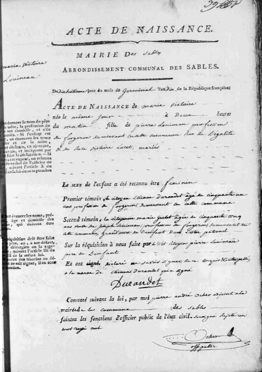 Père : LOUINEAU Joseph ( 1739 - ? )