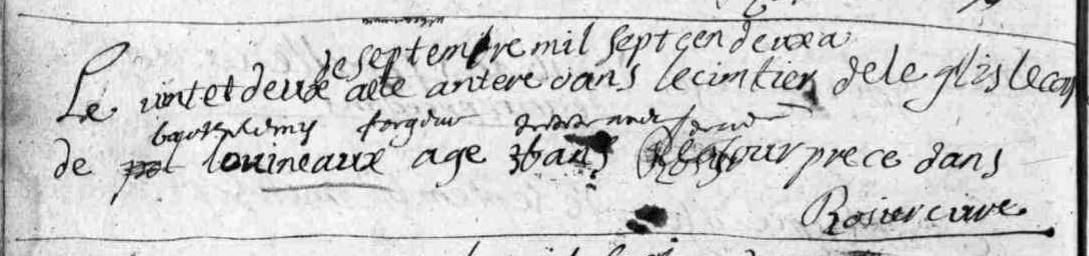 Naissance : 1666 Décès : 22 septembre 1702 à Les Sables-d'Olonne 85180