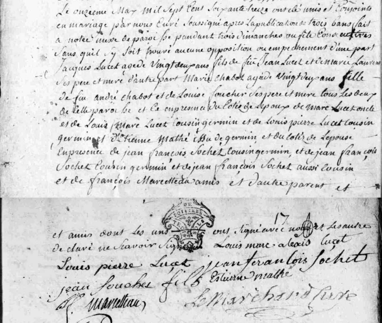 Union : POULAILLEAU Marie Aimée ( 1704 - 1759 )